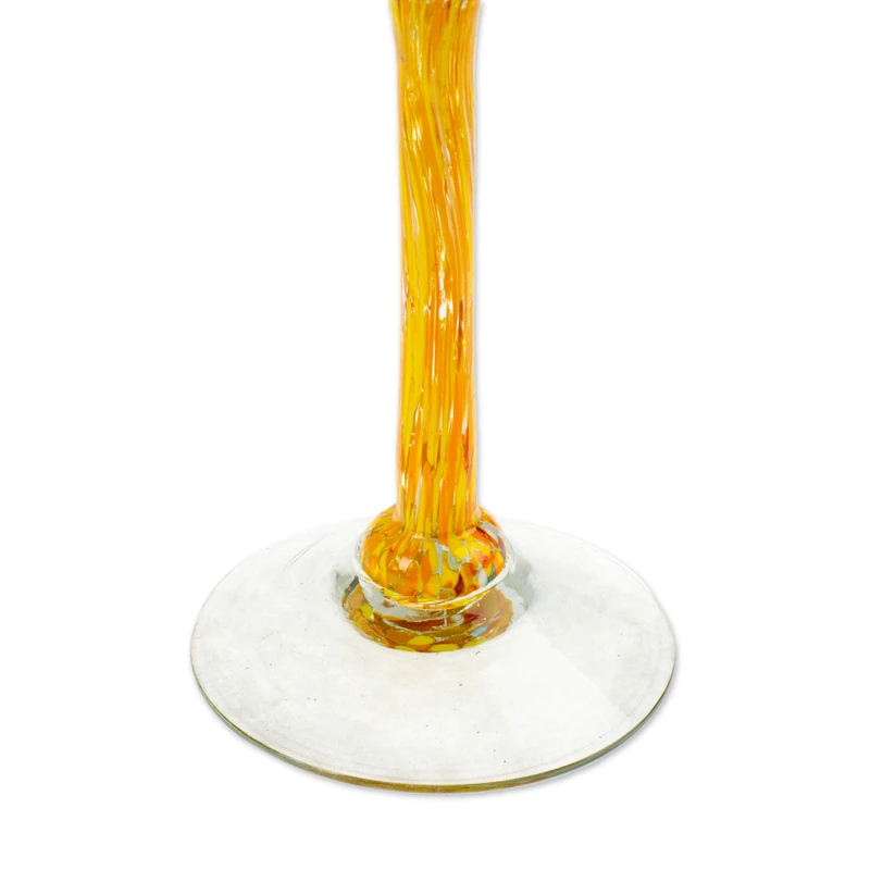 You will have the most colourful toasts with this splendid set of six handblown champagne flutes featuring vivid strokes in daffodil and tangerine. Part of the Novica Handblown Collection, the exquisite set is also eco-friendly as it is crafted in Mexico from recycled glass.