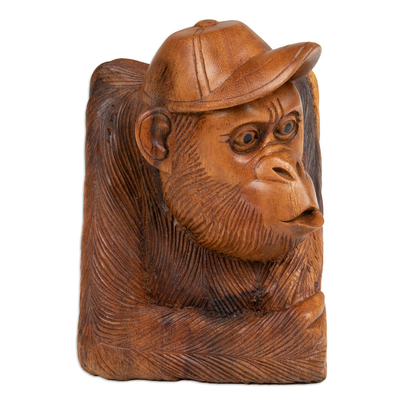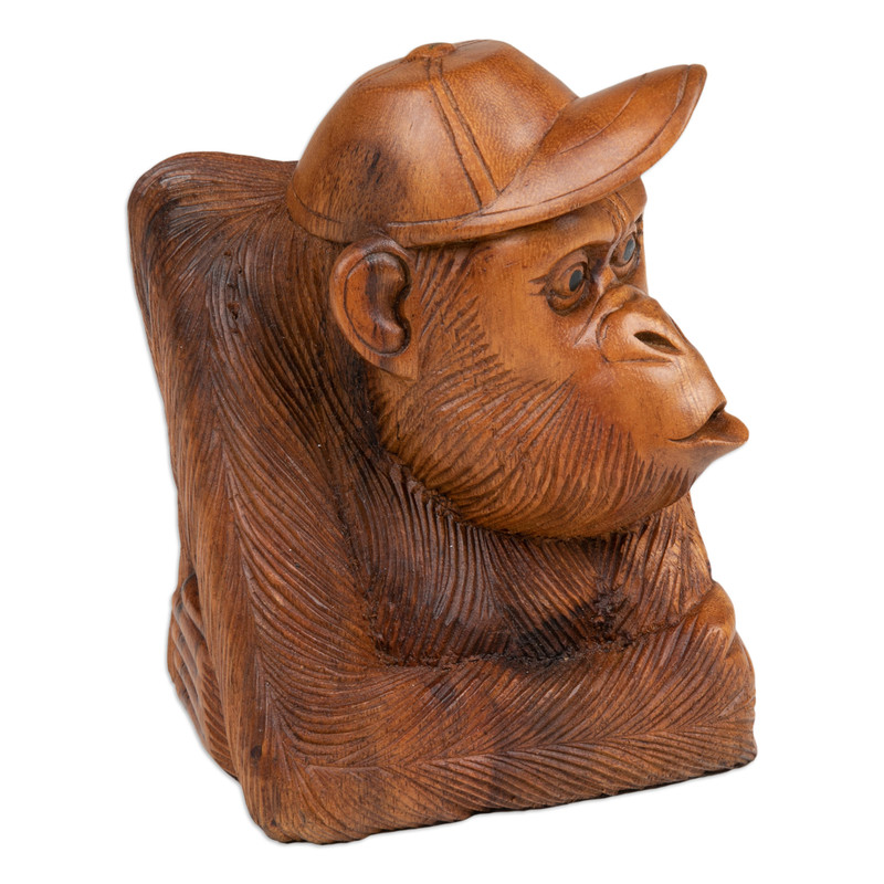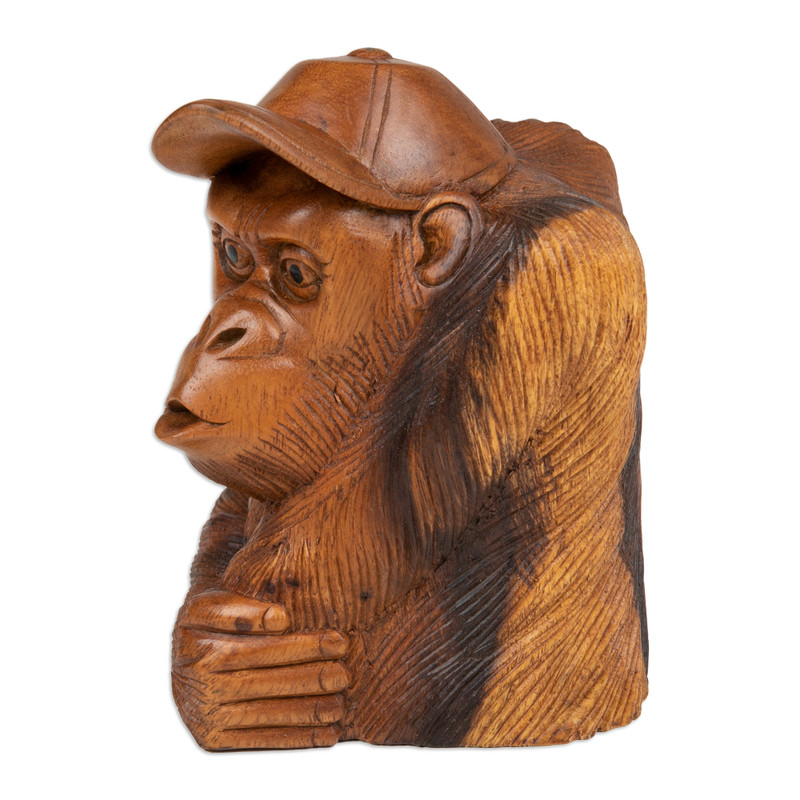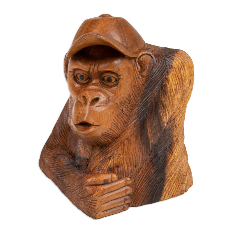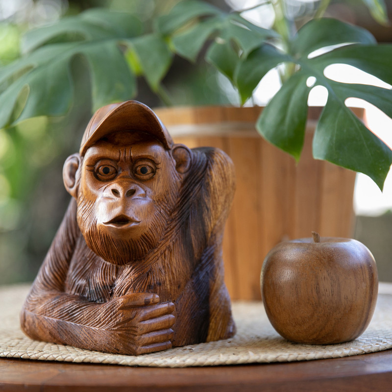 Backed by our 100% Happiness GuaranteeTransform your space into a whimsical retreat with Wayan Rendah's captivating sculpture depicting a playful orangutan wearing a baseball cap. Fashioned from suar wood in Bali, each detail is meticulously hand-carved and polished to perfection, radiating a natural aura that brings joy and character to your home decor.