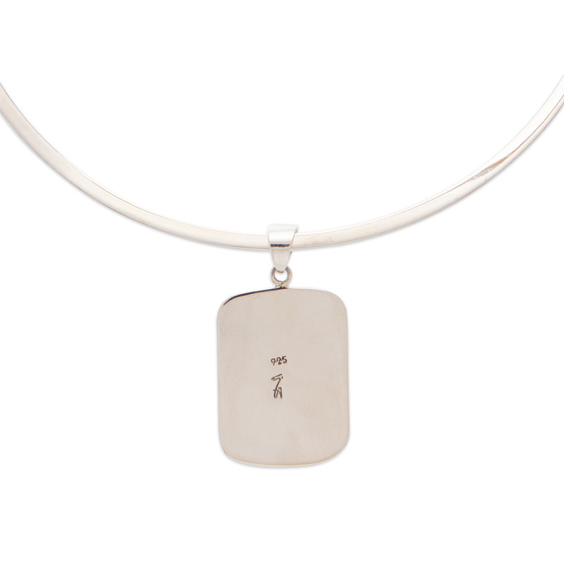 Backed by our Happiness GuaranteeStriking in its minimalist style, this elegant necklace focuses all attention on its beautiful gemstone. Guillermo Arregui crafts the choker of precious Taxco sterling silver to gleam in the light. He centers it with composite turquoise, its blues and golden tones evoking the sunny Mexican Caribbean.