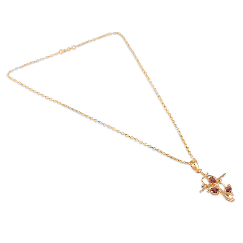 Bless those days of romance and true passion with a holy trinity of natural garnet jewels, sacredly set in this 22k gold-plated necklace from India. Alok Jain presents this cross-shaped design, whose leafy pendant merges the beauty of the sylvan trend with spiritual themes. The gems, cut in an oval shape, let their crimson light merge with the necklace's high-polished golden hue—all while also displaying their over-one-carat glamour.