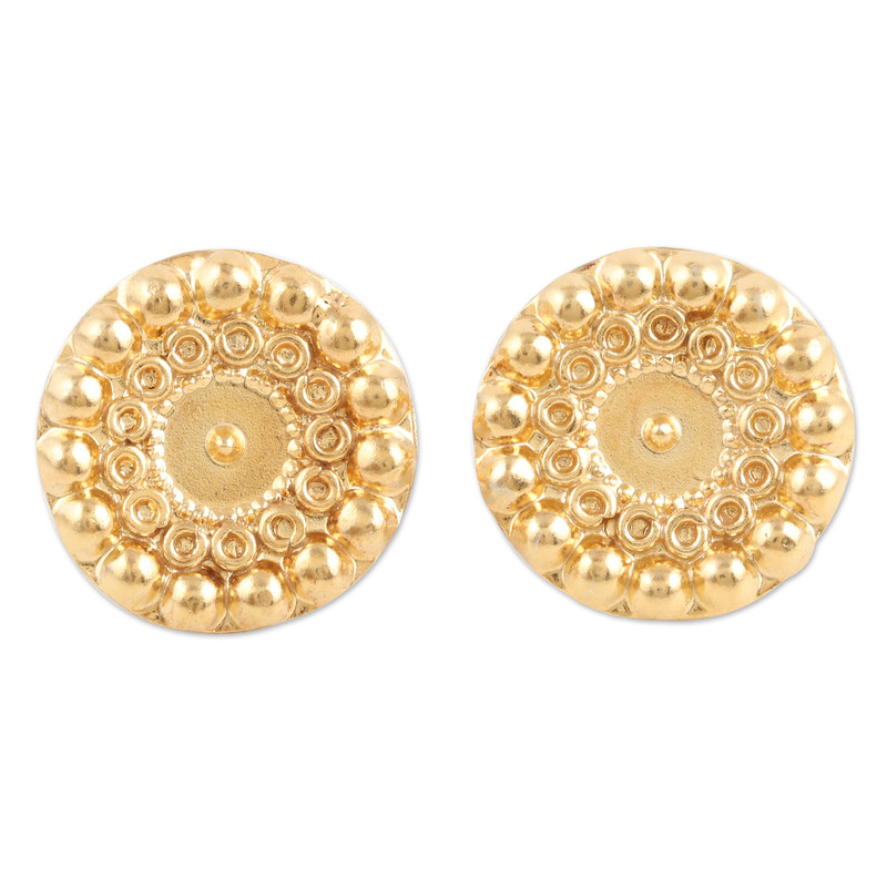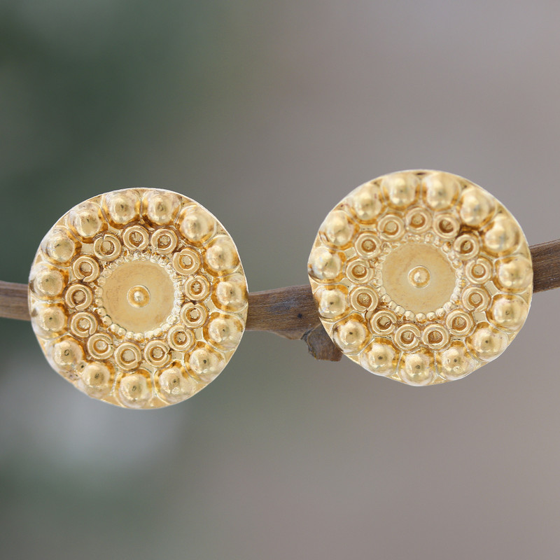 You can find our gold-plated button earrings 'Golden Enchantment' by Parul in jewelry categories such as No Stone Earrings, Gold Earrings, Gold Plated Earrings and Button Earrings. Enjoy exploring these sections for other Novica treasures.