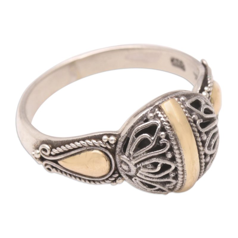 You can find our gold-accented cocktail ring 'Floral Dame' by Made Suyana in jewelry categories such as Floral Rings, No Stone Rings, Silver Rings, Sterling Silver Rings and Gold Rings. Enjoy exploring these sections for other Novica treasures.