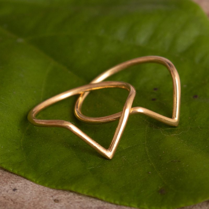 Designers Sandra and Lily of Lima, Peru have created a very simple ring design - a slender band with a "V" indentation in the front. What is different is that they are sold in sets of two to be worn together. The women say the rings symbolize "eternal love between two people, the perfect gift to represent love, union, loyalty, fidelity and respect."