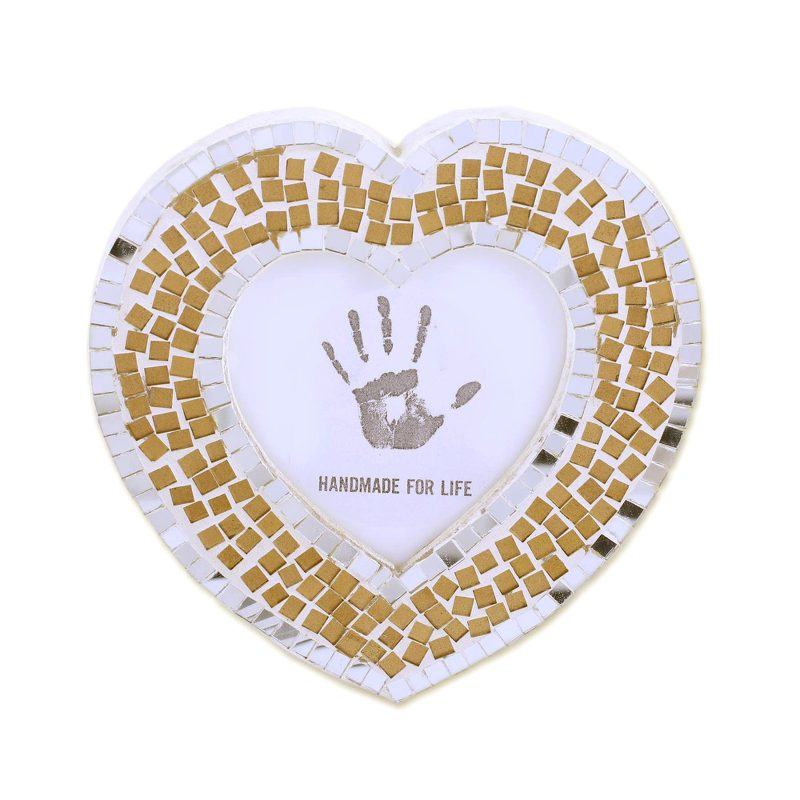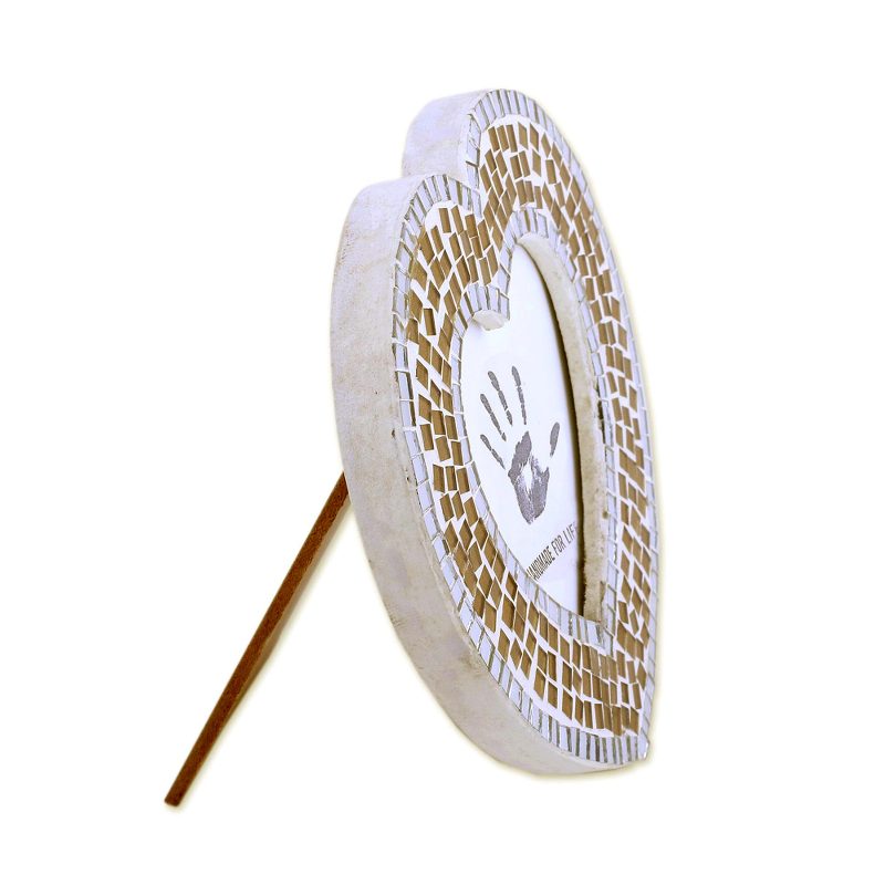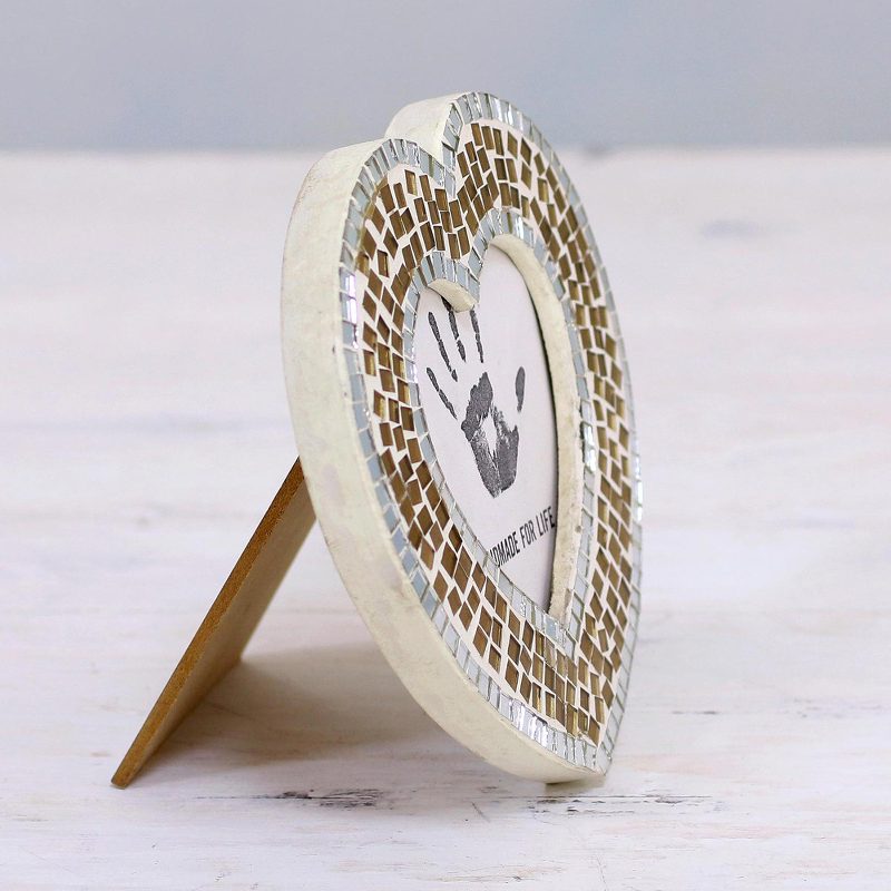 Glass mosaic tiles decorate this alluring photo frame from India, handcrafted in the shape of a heart by local artisans. Kalid Ali presents this lovely piece of home decor, perfect for displaying cherished memories.