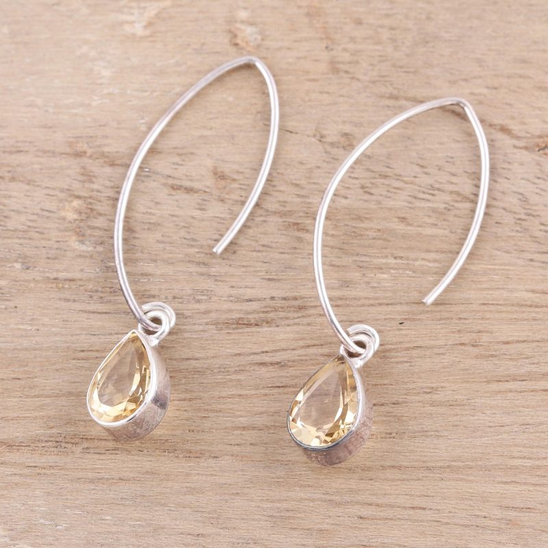 Backed by our 100% Happiness GuaranteeCitrine drops with a golden luster dangle from long sterling silver hooks in these earrings from Alok Jain. The shine of the polished sterling accentuates the radiance of the gemstones, giving the pair a shimmering beauty.