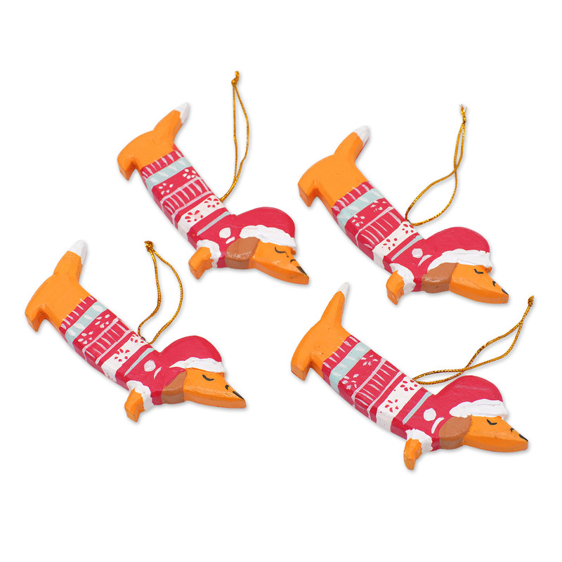 You can find our wood ornaments 'Merry Dachshunds' (set of 4) by Nik in holiday decor & ornaments categories such as Hand Painted Ornaments and Wood Ornaments. Enjoy exploring these sections for other Novica treasures.