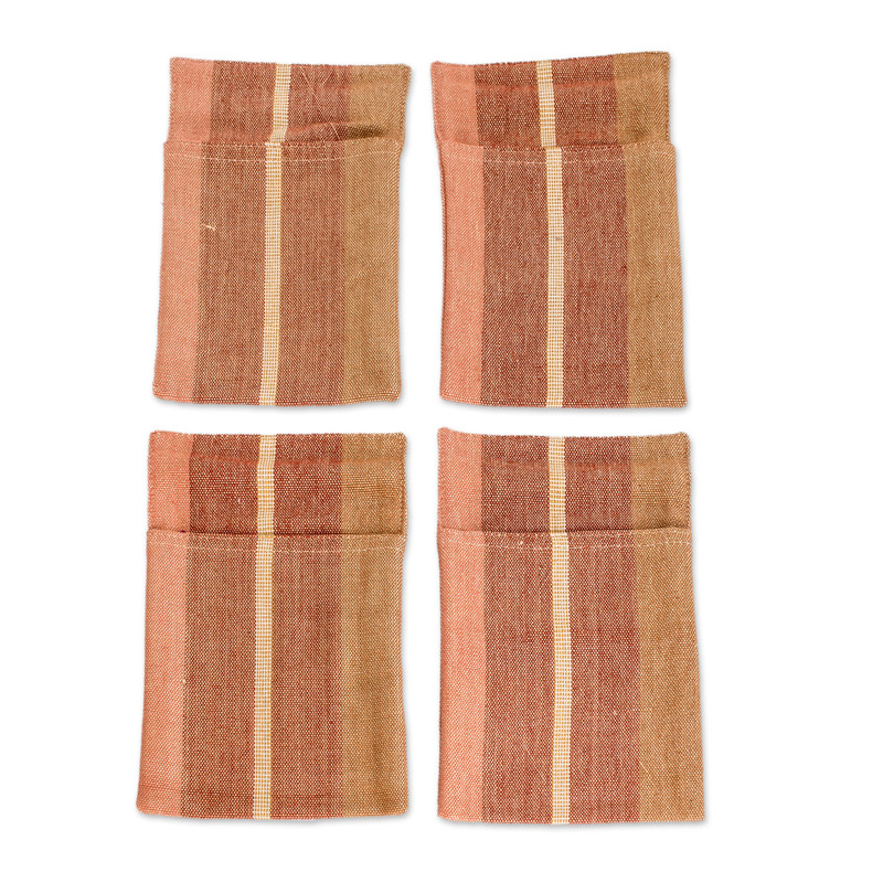 Indulge in the essence of handcrafted perfection with this fabulous cutlery holder set from Guatemala. Masterfully handwoven from cotton by the artisans of the Life and Hope Women's Association (Asociacion de Mujeres Vida y Esperanza), these four delightful accessories are a testament to skilled craftsmanship. Adorned with lovely striped patterns and a lively color palette, this set will bring warmth and sophistication to your table. Embrace the art of refined dining and let this exceptional set impress your guests with its unparalleled beauty and practicality.