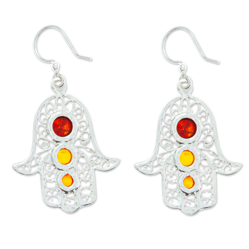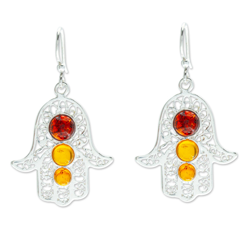 You can find our amber dangle earrings 'Warm Hand of Fatima' by Del Toro Family in jewelry categories such as Good Fortune Earrings, Protection Earrings, Spiritual Earrings, Amber Earrings and Silver Earrings. Enjoy exploring these sections for other Novica treasures.