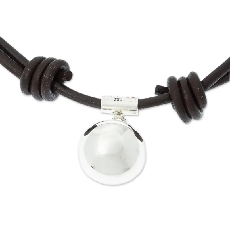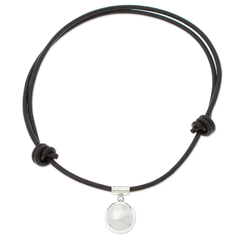 The Maya moon deity, Ixchel, could be depicted as either male or female, a perfect name for this innovative necklace appropriate for both men and women. With a 950 silver pendant hanging from an adjustable brown leather cord, it is designed and crafted by Taxco artisan Mikelo, an up-and-coming talent looking to expand on his Mexican hometown's famous silver jewelry tradition.