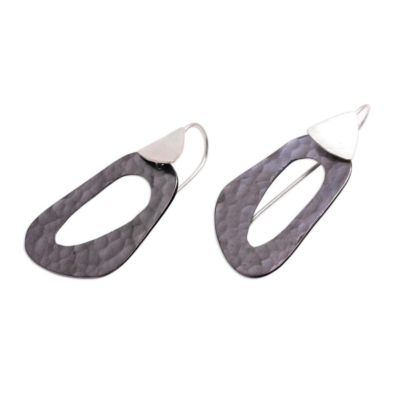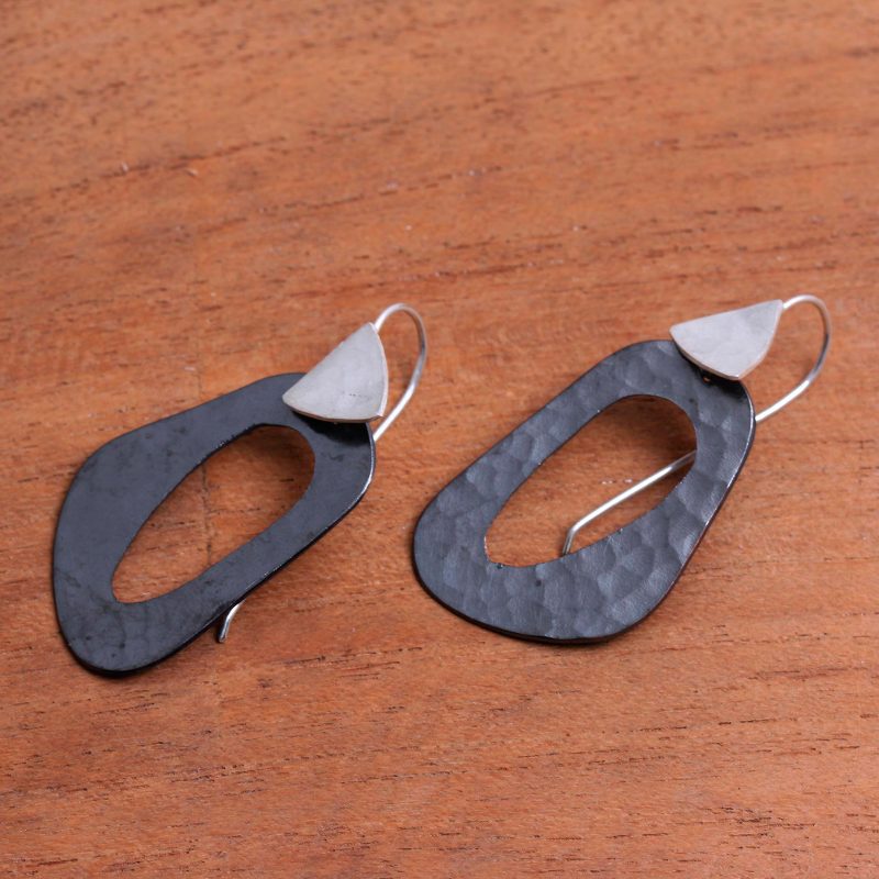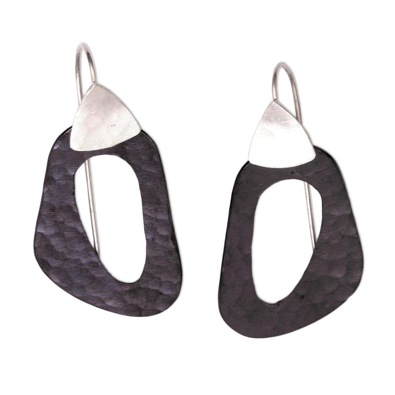 Backed by our 100% Happiness GuaranteeHandcrafted from copper and given a darkly oxidized finish, two abstract shapes with openwork dangle. Balinese artisan Nyoman Nartawan designs this modern pair of dangle earrings, crafted with sterling silver.