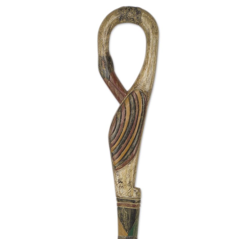 Backed by our 100% Happiness GuaranteeA traditional adinkra symbol from Ghana inspires this beautiful walking stick by Evelyn Kafui Ahianyo. Carved by hand, it features the sankofa image. This is understood as "go back to your roots," a message conveyed through the form of a bird with its head tilted backward.
