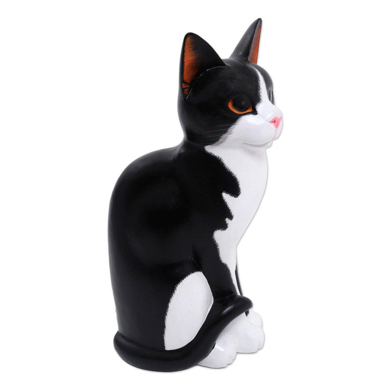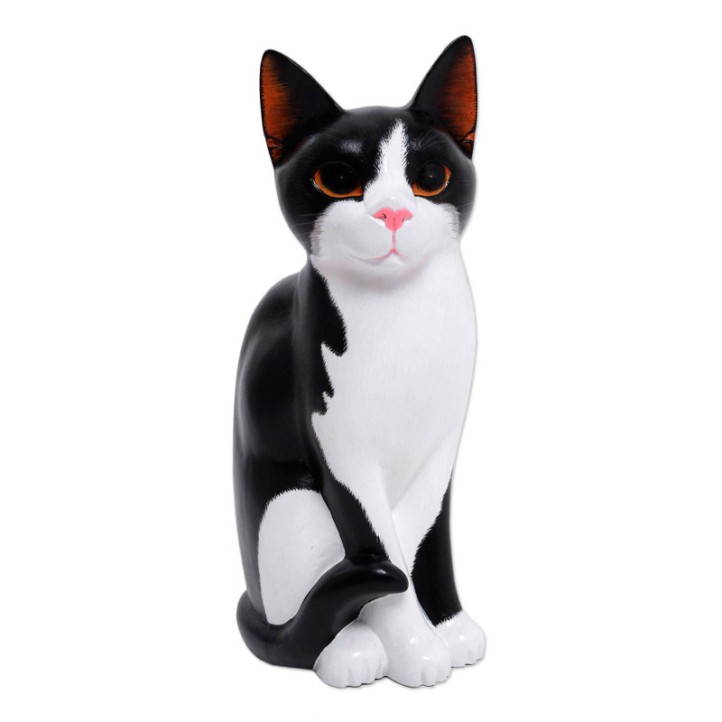 Backed by our 100% Happiness GuaranteeGazing curiously at her owner, a cat seems to ask questions with her golden eyes. Nengah Sudarsana carves the beautiful kitty from Balinese albesia wood and realistically adds color by hand. The lifelike statuette seems to purr.