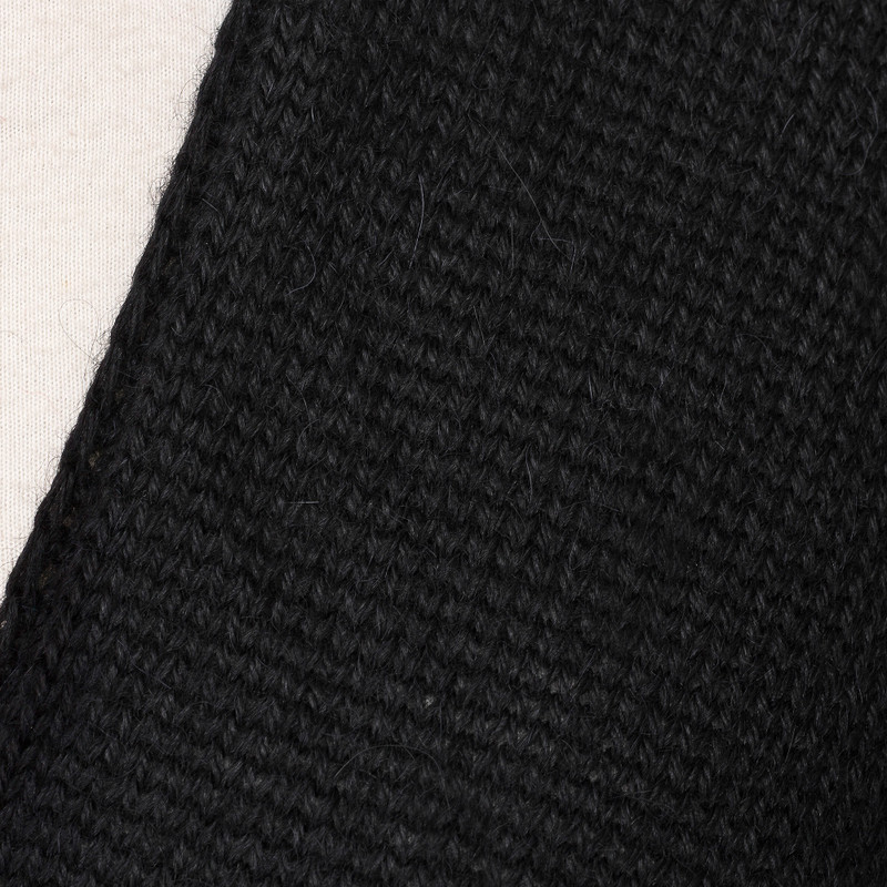 Cut like a cape, this generous wrap is knitted in a smooth jersey stitch. Combineable with everything, a black alpaca blend distinguishes this versatile design by Alfredo Falcón. He finishes it with a hand-crocheted border.