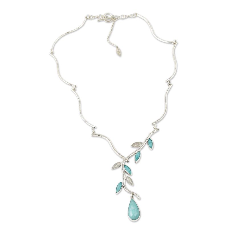 Backed by our 100% Happiness GuaranteeAmazonite raindrops quiver on leafy branches in the exquisite design of this necklace. Peru's Maria Huerta finds inspiration in nature for this feminine and dramatic design.