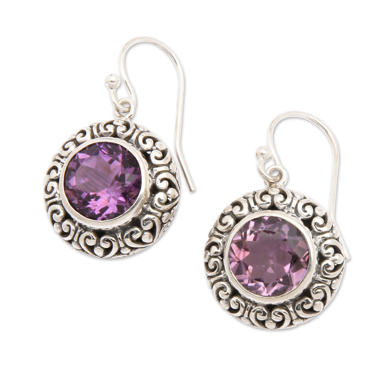 You can find our amethyst dangle earrings 'Swirling Dew' by Kadek Wijanegara in jewelry categories such as Birthstone Earrings, Amethyst Earrings, Silver Earrings, Sterling Silver Earrings and Dangle Earrings. Enjoy exploring these sections for other Novica treasures.