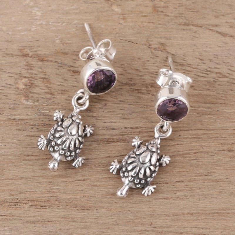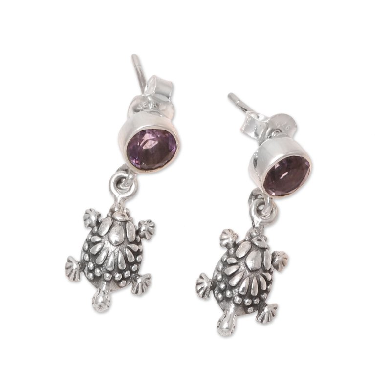 You can find our amethyst dangle earrings 'Turtle Essence' by Narayannii in jewelry categories such as Gemstone Earrings, Amethyst Earrings, Sterling Silver Earrings and Dangle Earrings. Enjoy exploring these sections for other Novica treasures.