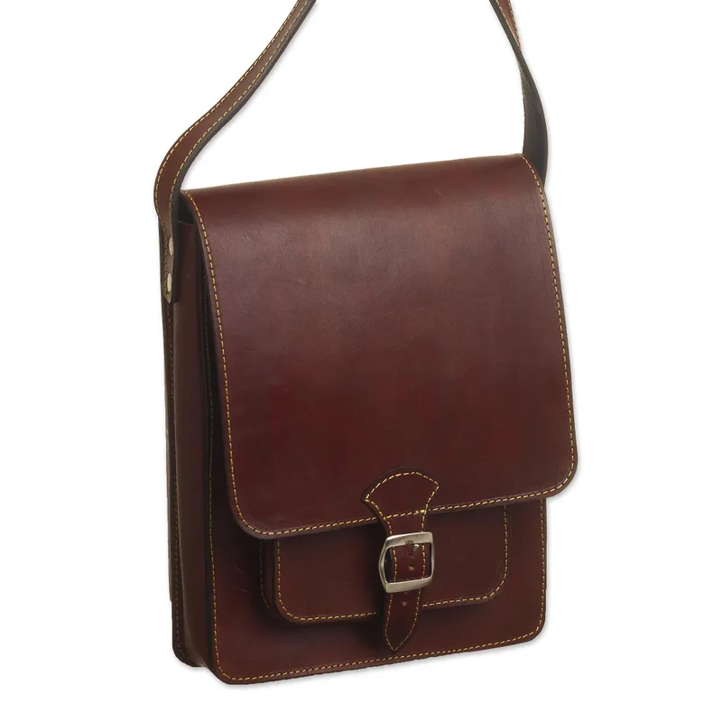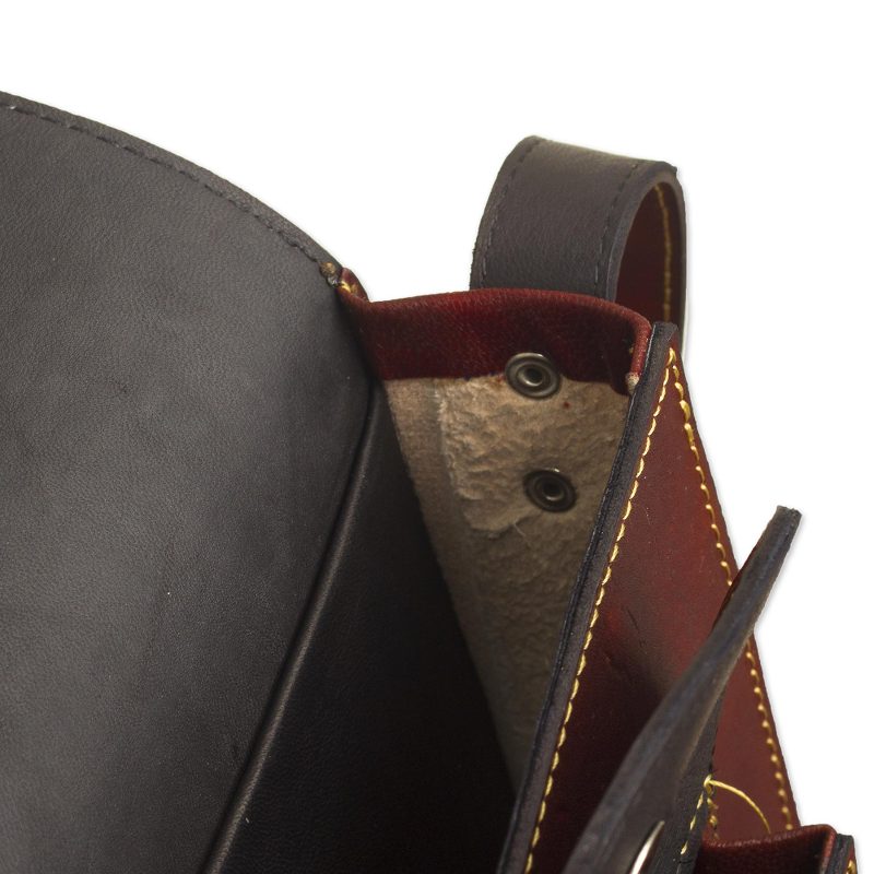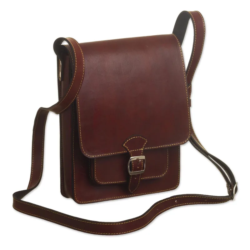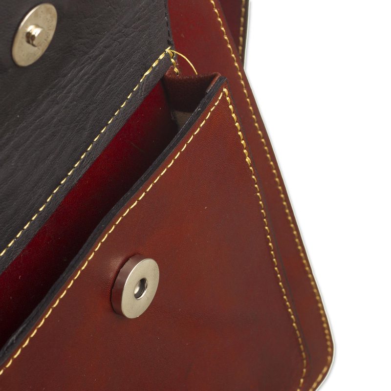 Peru's Kathiana Quispe handcrafts this stunning Andean leather crossbody messenger bag to help you get all your travel essentials in one place. The bag features a front pocket with a magnetic snap closure to keep small items at hand and is finished with a buckle closure and an adjustable strap to make it safe and easy to carry.