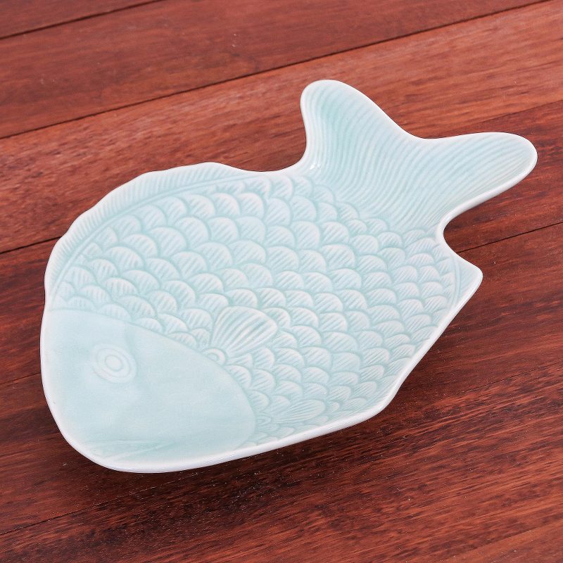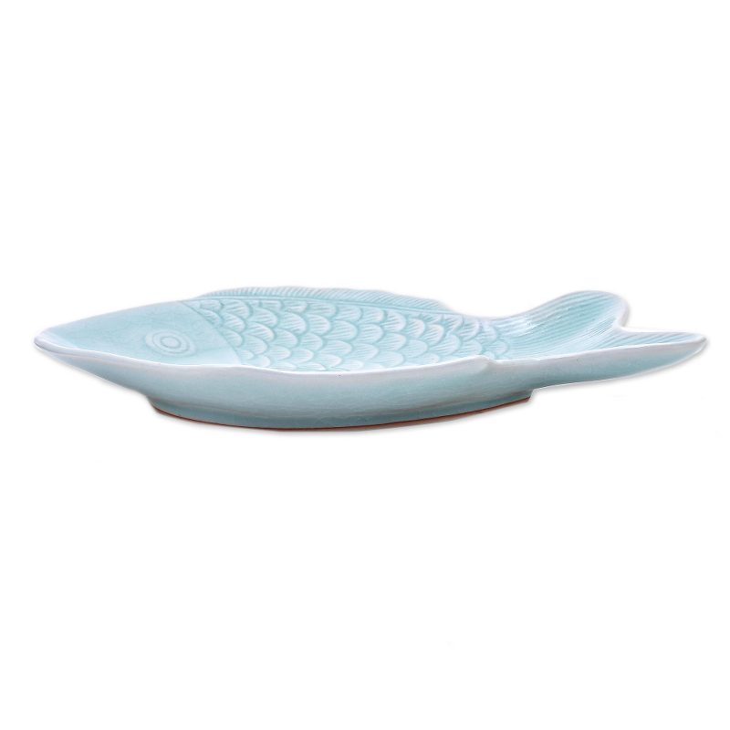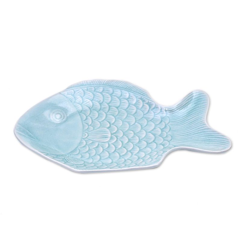 You can find our celadon ceramic serving plate 'Mae Ping Fish in Aqua' by Penpan in tableware categories such as Animal Themed Serveware, Celadon Serveware, East meets West Serveware, Ceramic Serveware and Serving Plates Serveware. Enjoy exploring these sections for other Novica treasures.