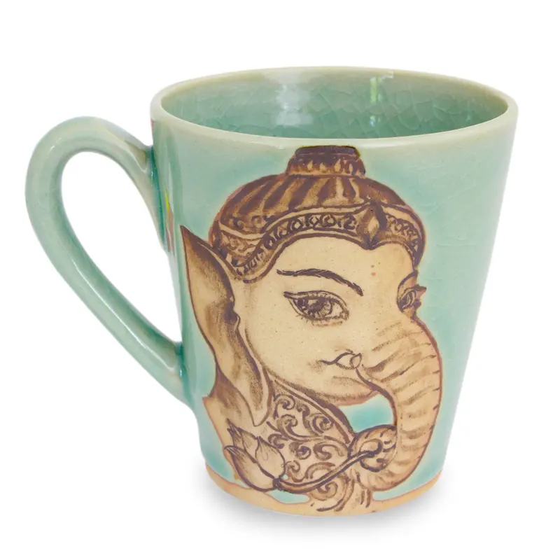 You can find our celadon ceramic mug 'Baby Ganesh' by Duangkamol in tableware categories such as East meets West Dinnerware, Ceramic Dinnerware and Mugs and Cups Dinnerware. Enjoy exploring these sections for other Novica treasures.