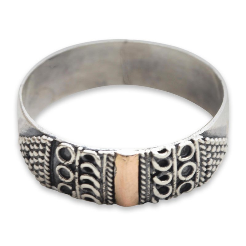 Shining sterling strands and tiny silver globes invoke peace with their sweet symmetry. Bathed in 18k gold, a gleaming rectangle centers this handcrafted ring from Komang Wijayana.