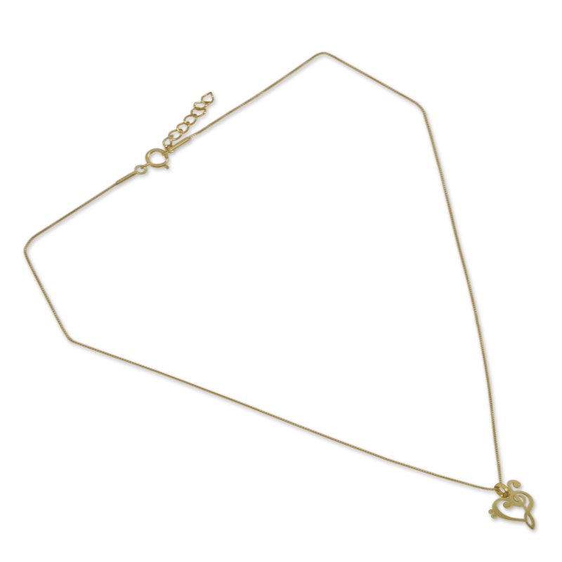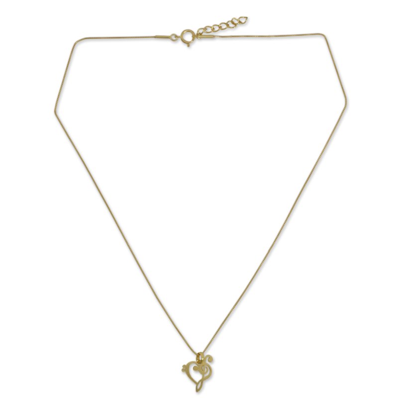 With the clever alignment of a bass clef and an inverted treble clef symbol, artisan Jantana of Thailand creates a heart. She crafts the pendant of sterling silver with her trademark brushed satin finish, and places it on a sleek Venetian box chain.
