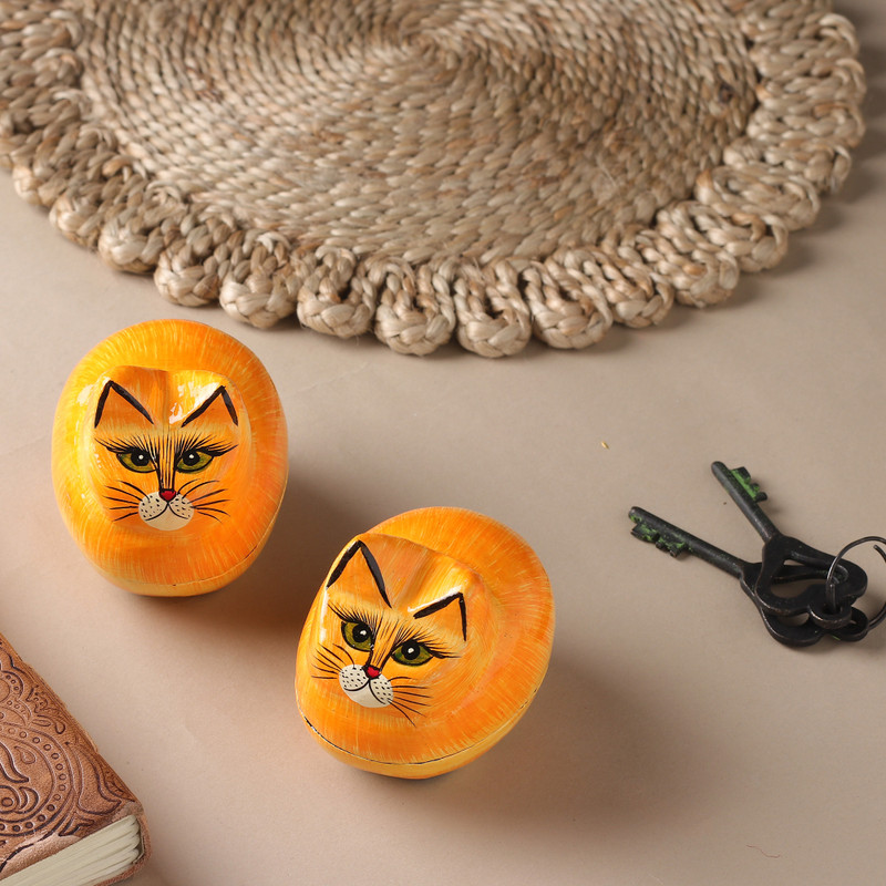 Backed by our 100% Happiness GuaranteeHaving learned the art of papier mache from his father, Fida Hussain creates decorative boxes in the shape of wide-eyed cats. Both are expertly crafted by hand and painted with a vivid resemblance to the sweet felines.