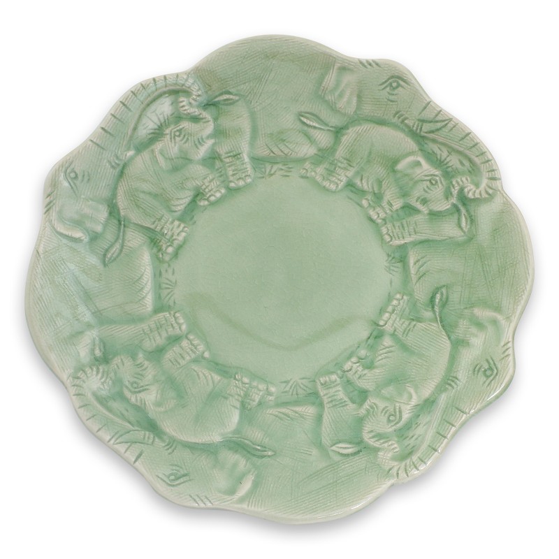 You can find our celadon ceramic plate 'Elephant Family' by Thatsanee and Ramphan in tableware categories such as Animal Themed Dinnerware, Celadon Dinnerware, East meets West Dinnerware, Garden Party Dinnerware and Ceramic Dinnerware. Enjoy exploring these sections for other Novica treasures.