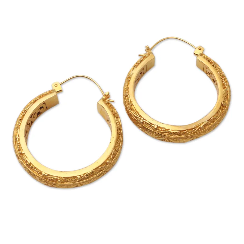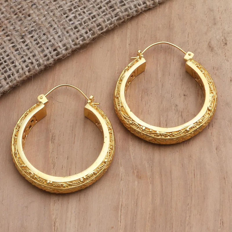 You can find our gold-plated hoop earrings 'Admiring Beauty' by Dewa Nyoman Oka in jewelry categories such as No Stone Earrings, Brass Earrings, Gold Earrings, Gold Plated Earrings and Hoop Earrings. Enjoy exploring these sections for other Novica treasures.