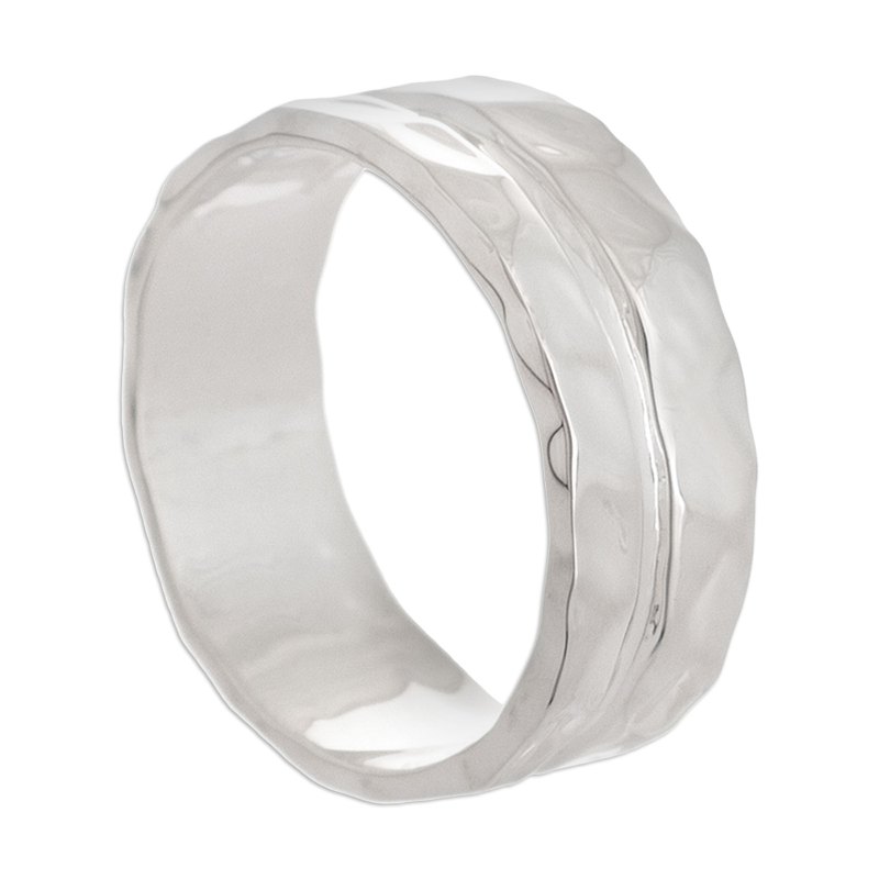 Backed by our 100% Happiness GuaranteeGlossy Andean sterling silver dazzles the eyes on this contemporary band ring from Peru. Yan Fredy Bolivia designs the stylish ring.