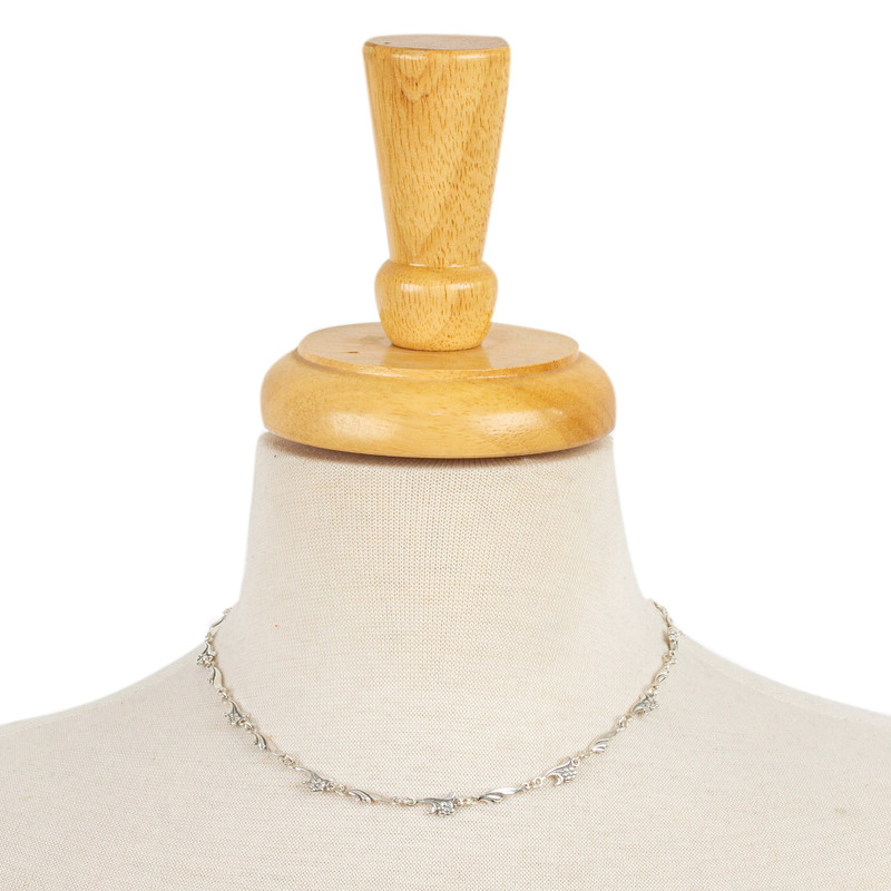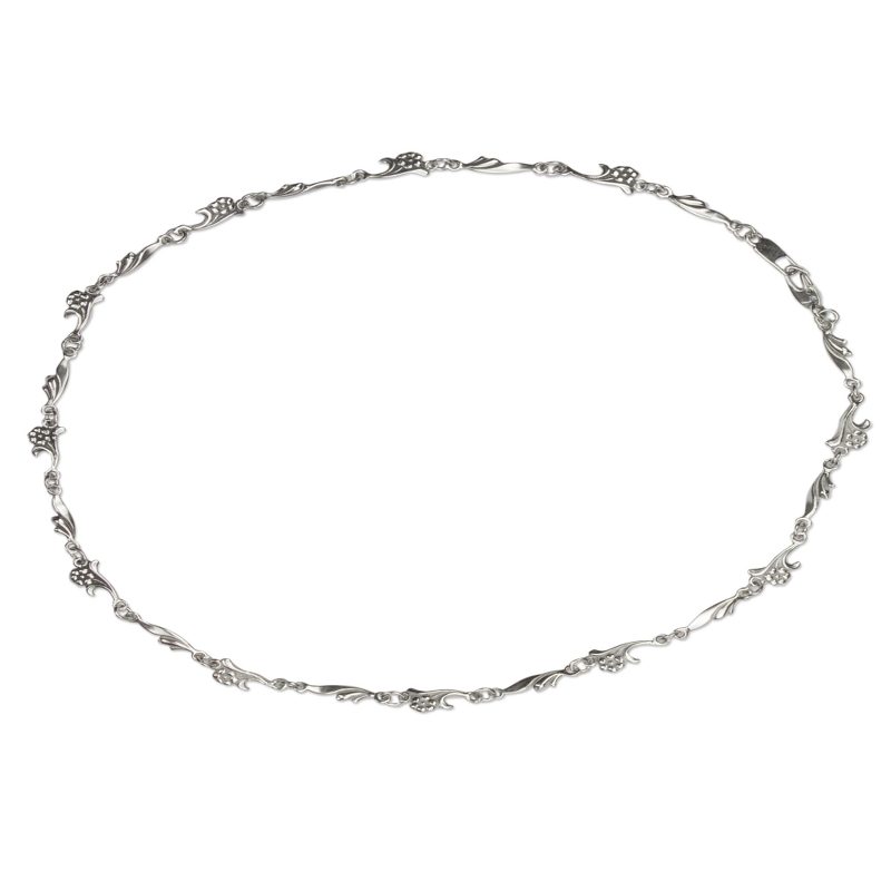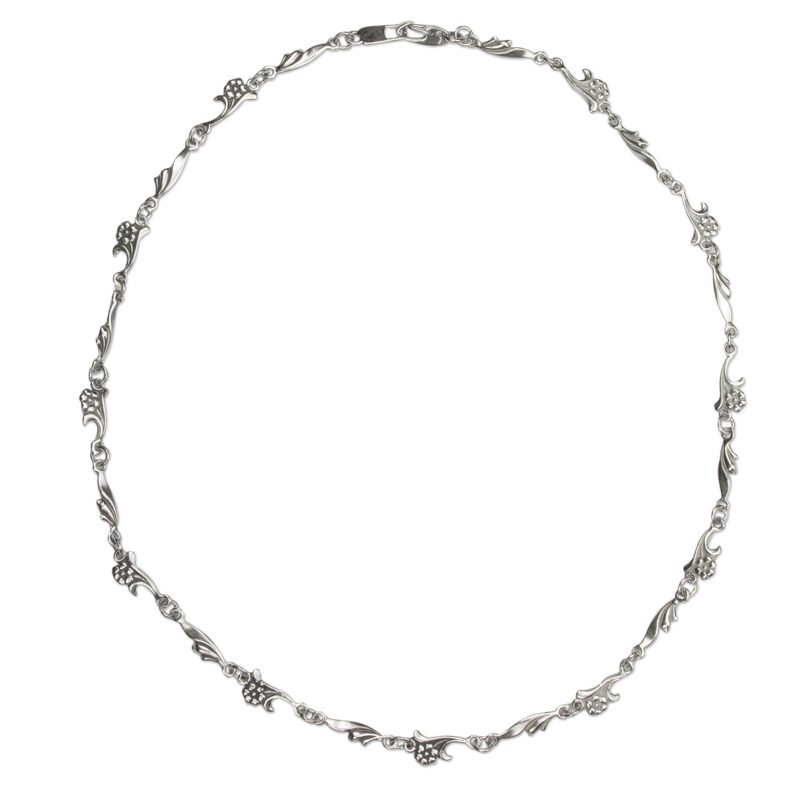Traditional Mexican jewelry from bygone centuries inspires Gianluca Anzani's nostalgic designs. Working in sterling silver, he crafts a beautiful chain necklace comprised of diminutive flowers and petite foliage.