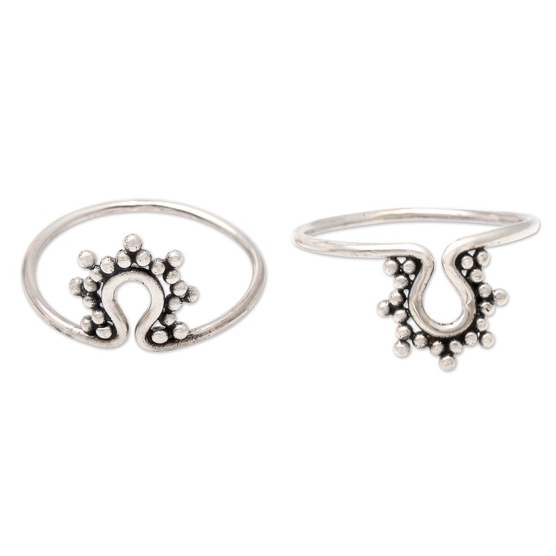 With their elegant shape and versatile design, Made Sriasih's pair of stacking rings offer timeless appeal. The Balinese artisan hand crafts the pair from sterling silver, fashioning two temple-inspired shapes you can mix and match to you heart's content.