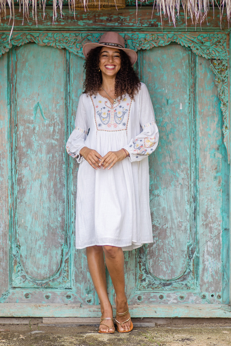 You can find our embroidered cotton midi dress 'Spring Sonata' by Anchal Ahuja in clothing categories such as Embellished Dresses, Travel Friendly Dresses, Cotton Dresses and A-line Dresses. Enjoy exploring these sections for other Novica treasures.