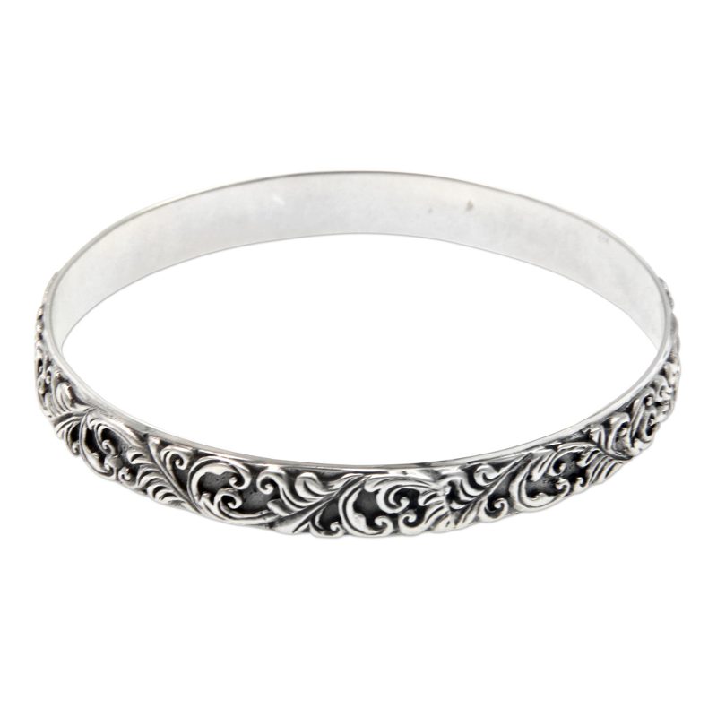 Backed by our 100% Happiness GuaranteeDetailed in low relief, a Balinese wreath becomes a bracelet of timeless elegance. Nyoman Rena applies oxidized accents as he crafts the sterling silver bangle by hand.