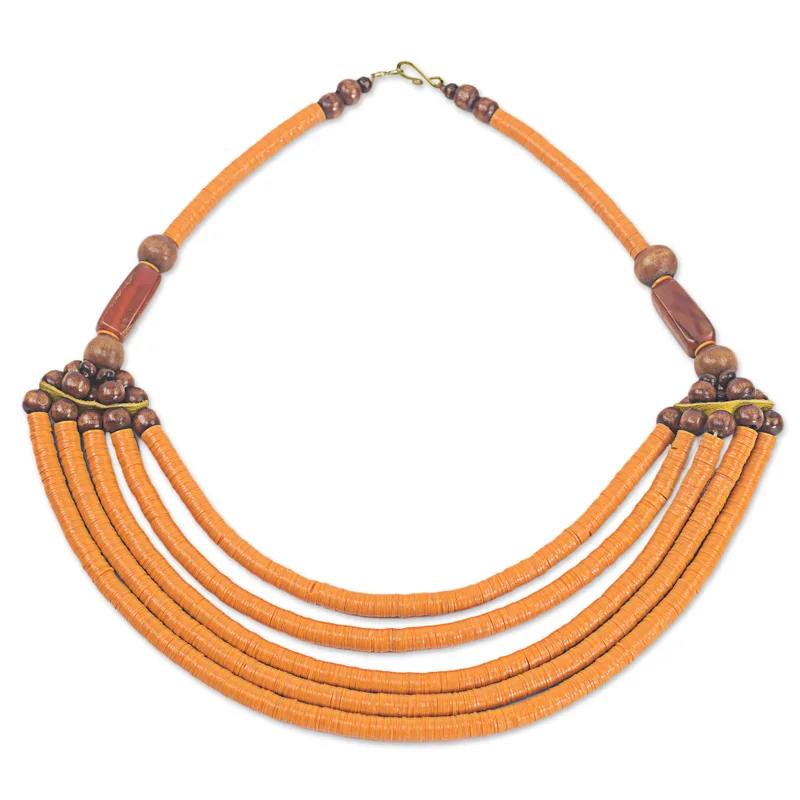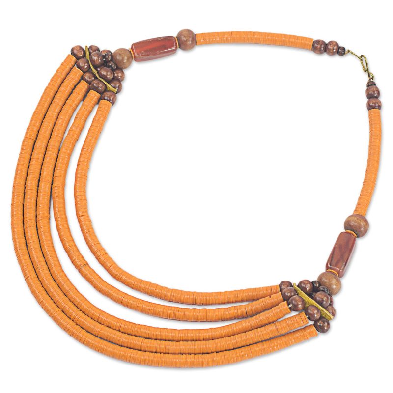 You can find our beaded necklace 'Wend Panga in Orange' by Ila Suleyman in jewelry categories such as Birthstone Necklaces, Eco-Friendly Necklaces, Agate Necklaces, Wood Necklaces and Recycled Plastic Necklaces. Enjoy exploring these sections for other Novica treasures.