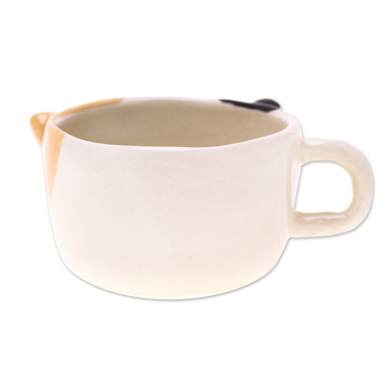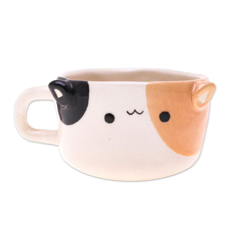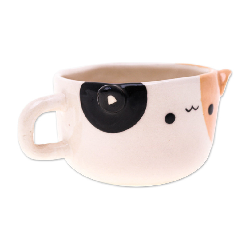 Tasty snacks are on the table, waiting for today's host! Thailand's Paiboon invites you for a cappuccino with this animal-themed ceramic espresso cup. Carefully crafted and hand-painted, this whimsical demitasse assumes the form of a calico cat to add a graceful touch to your drinks.