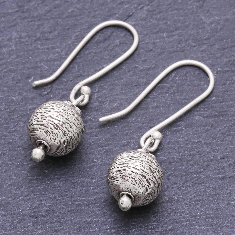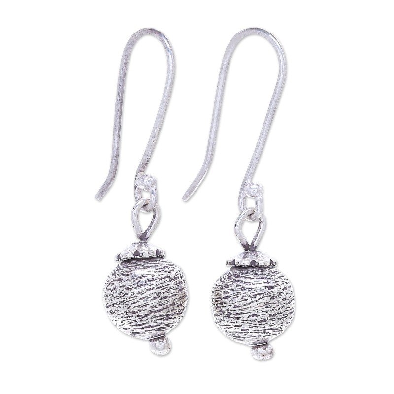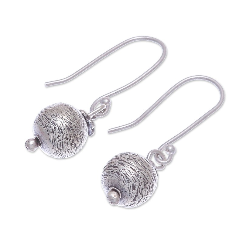 Textured globes in oxidized sterling silver catch the light in these pretty dangles earrings from Thai artisan Samart Takham. The globes are topped with petite flower charms in sterling silver and finished with elegant silver hooks.