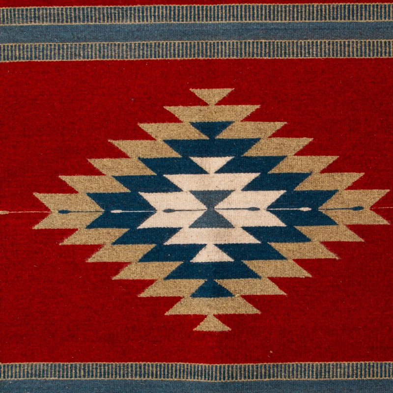 The ancient Zapotec textile style decorates this wool rug with distinguished geometric details, just as stunning as gems. Mexico's Ruiz Bazan Family weaves each refined yarn through classic techniques, dying them in a palette of natural russet, azure and beige hues. To add a charming vibe, fringes complete the rug.