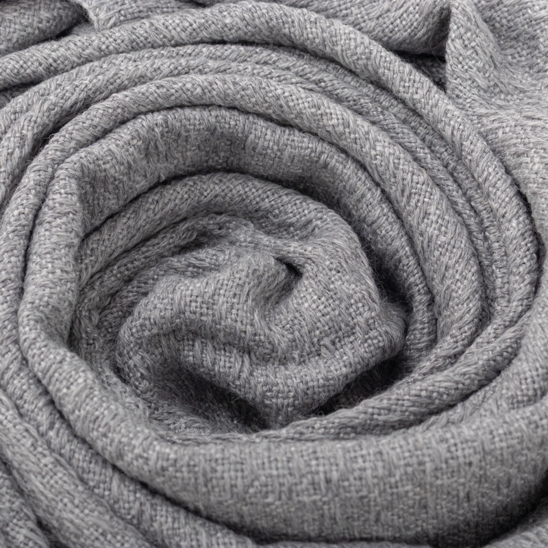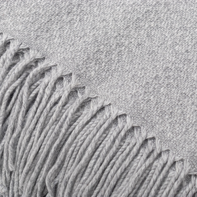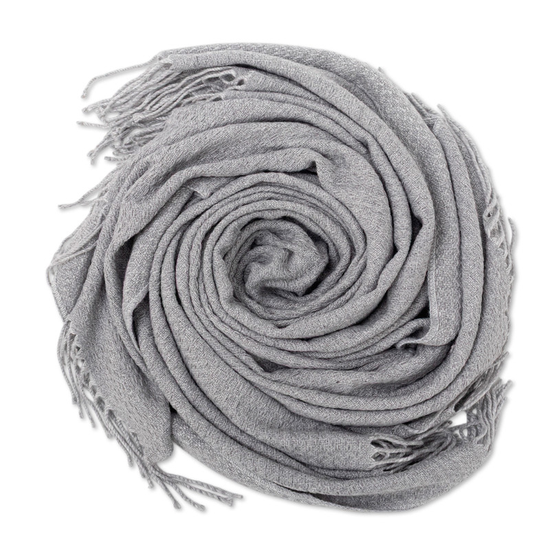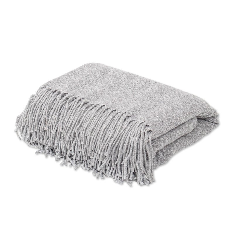 Peru's Nestor Yana creates this elegant throw blanket from a soft blend of acrylic and alpaca wool. The textured throw in a soft grey color is accented with long fringe.