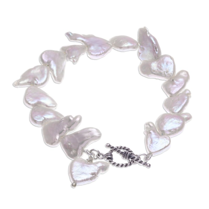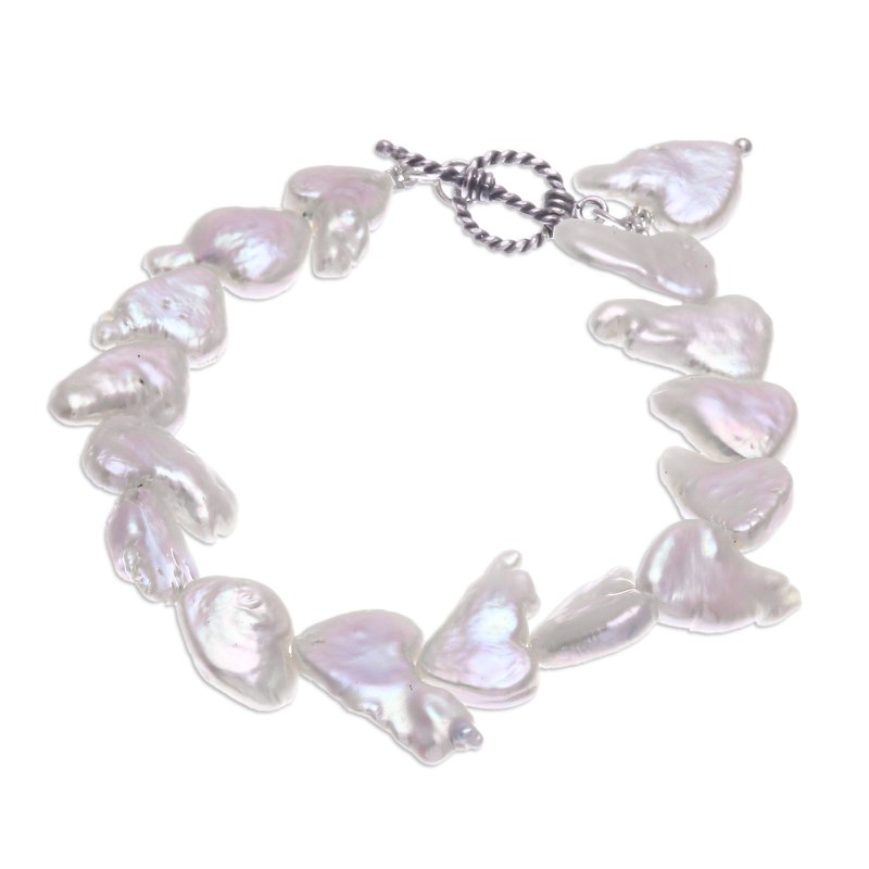 Backed by our 100% Happiness GuaranteeDesigned by Thai artisan Matta, this bracelet captures the beauty of nature. The bracelet is strung with freeform baroque cultured pearls in iridescent white. A sterling silver rope motif toggle clasp completes the design.