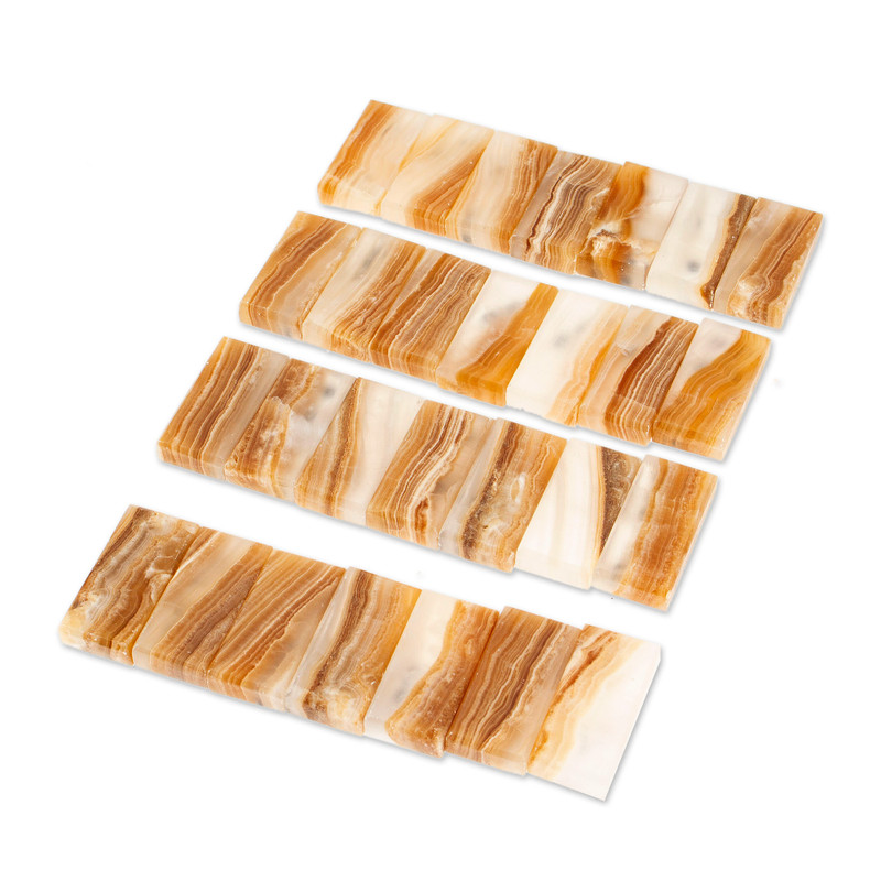 Backed by our Happiness GuaranteeThe game that blends chance and skill in exciting ways, dominoes make a fun and decorative addition to your home with this set from Mexico. The talented artisans of the Sierra Family work with natural beige and ivory onyx to create this set. Crafted by hand, each piece arrives within a complementary storage box shaped like a large domino.