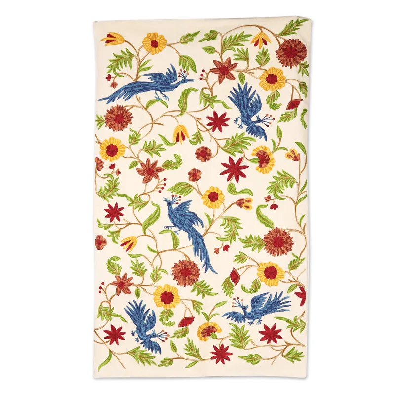 Capturing nature's magnificence, this area rug is designed by Amit Moza in India. Local artisans work with cotton to hand-weave this rug, its ivory body decorated with colorful bird and floral chain stitch embroidery. This rug is backed with cotton canvas.