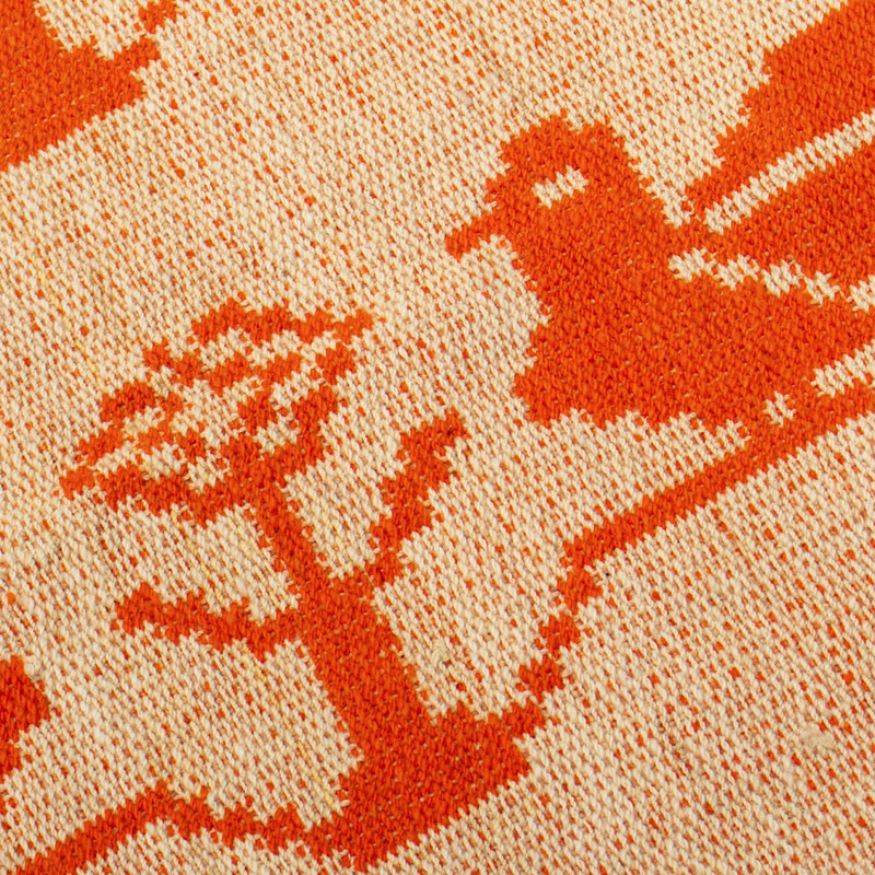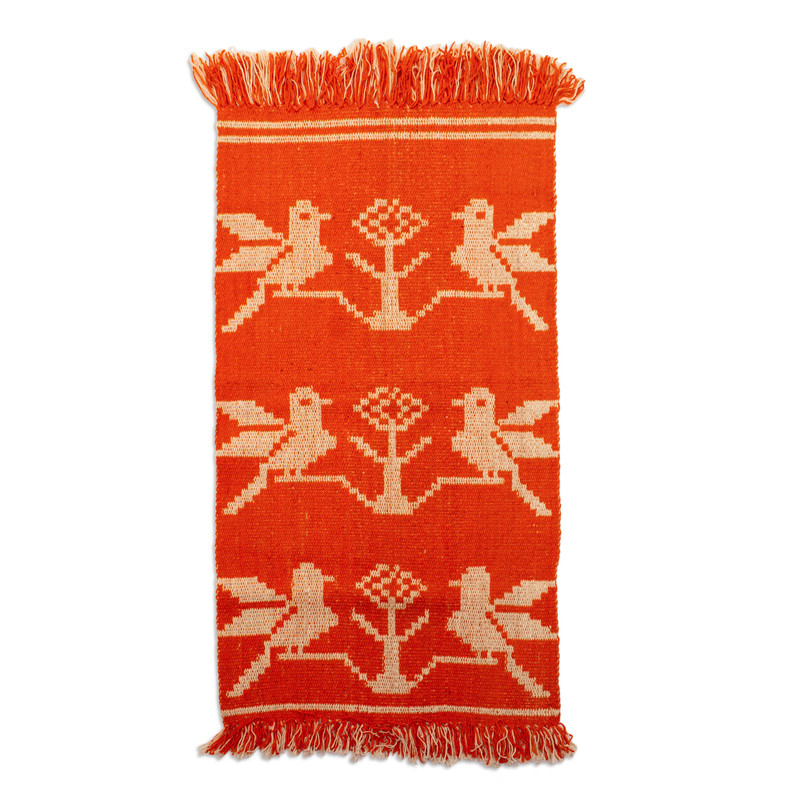 Transporting the precious Andean mornings to your home, Peruvian artisan Antonio Vasquez and a team of talented weavers create this wool area rug. Sweet birds in the traditional style of the region decorate the piece, whose scarlet and alabaster hues invite the ethereal chant of the birds to your interiors. On top of that, the rug has a reversible design.