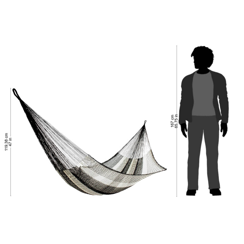 Backed by our 100% Happiness GuaranteeThis comfortable hammock in black and ivory is destined to enhance your treasured moments of sweet relaxation. Skilled Maya Artists of the Yucatan hand-weave this hammock using the same techniques as their Maya ancestors.