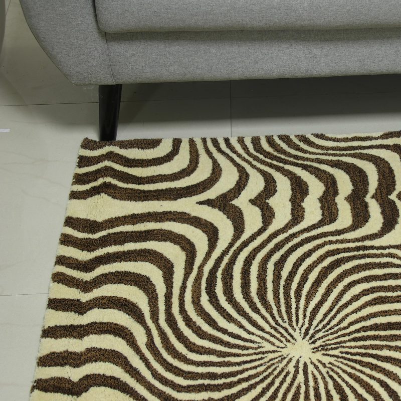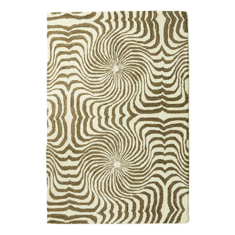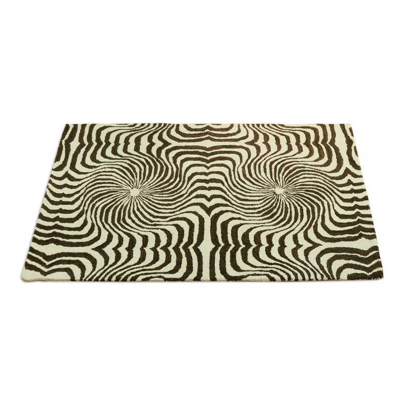 Add sophisticated style to any room with this gorgeous hand-tufted wool rug. Presented by India's Gopal Khaitan, this rug features a spiral motif in mesmerizing hues of black, cinnamon brown and ivory.
