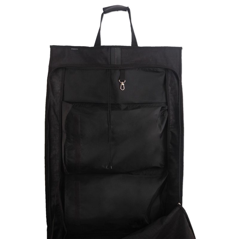 Cleverly-designed by Karina and Maybee, this garment bag is essential for transporting clothes for business meetings and special occasions. It contains two large compartments for two clothing items in each, another in the lower front as well as two more in the interior. The canvas fabric is lightweight and waterproof to protect garments from bad weather.