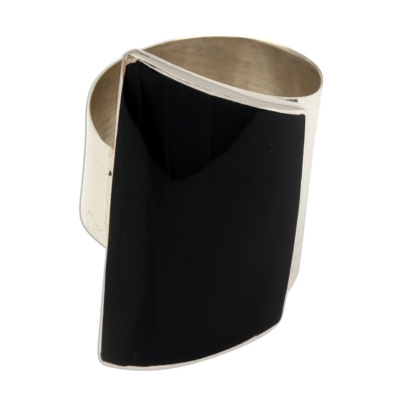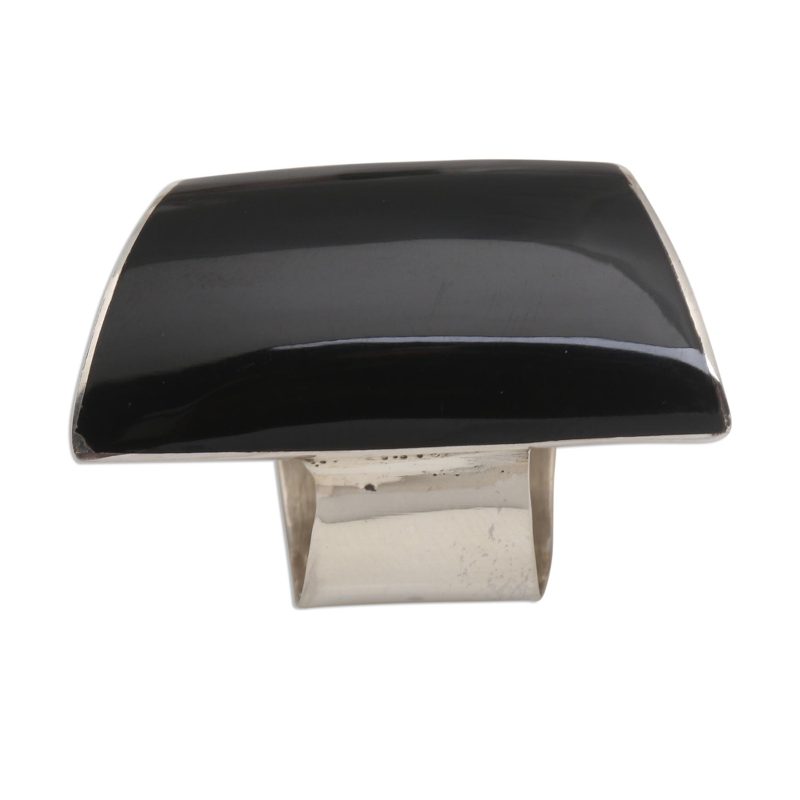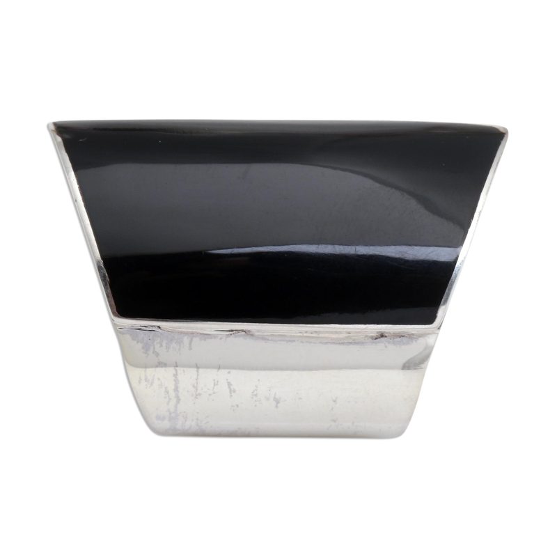 Backed by our 100% Happiness GuaranteeBali's Kadek Satya creates this striking cocktail ring, crafted from smooth black resin and polished sterling silver. Her modern design celebrates bold geometry.