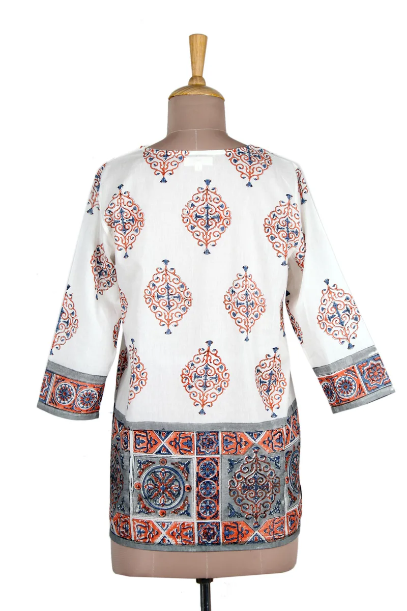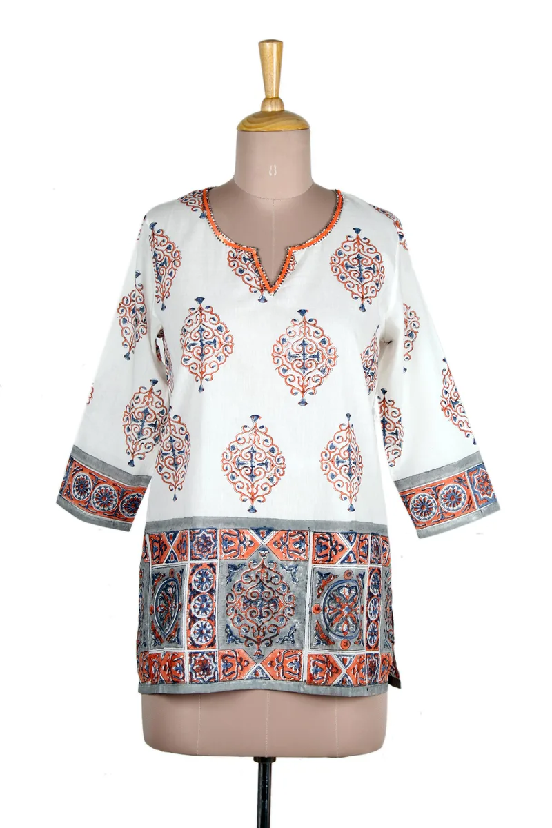 You can find our block-printed cotton tunic 'Mughal Glory' by Vijay Singh in clothing categories such as Block Print Tops, Travel Friendly Tops, Cotton Tops and Tunics Tops. Enjoy exploring these sections for other Novica treasures.