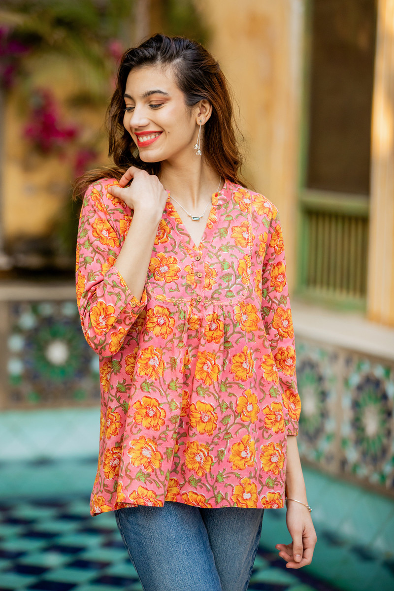 You can find our block-printed cotton tunic 'Spring Morning Marigold' by Ritu Agnihotri in clothing categories such as Block Print Tops, Floral Tops, Cotton Tops and Tunics Tops. Enjoy exploring these sections for other Novica treasures.