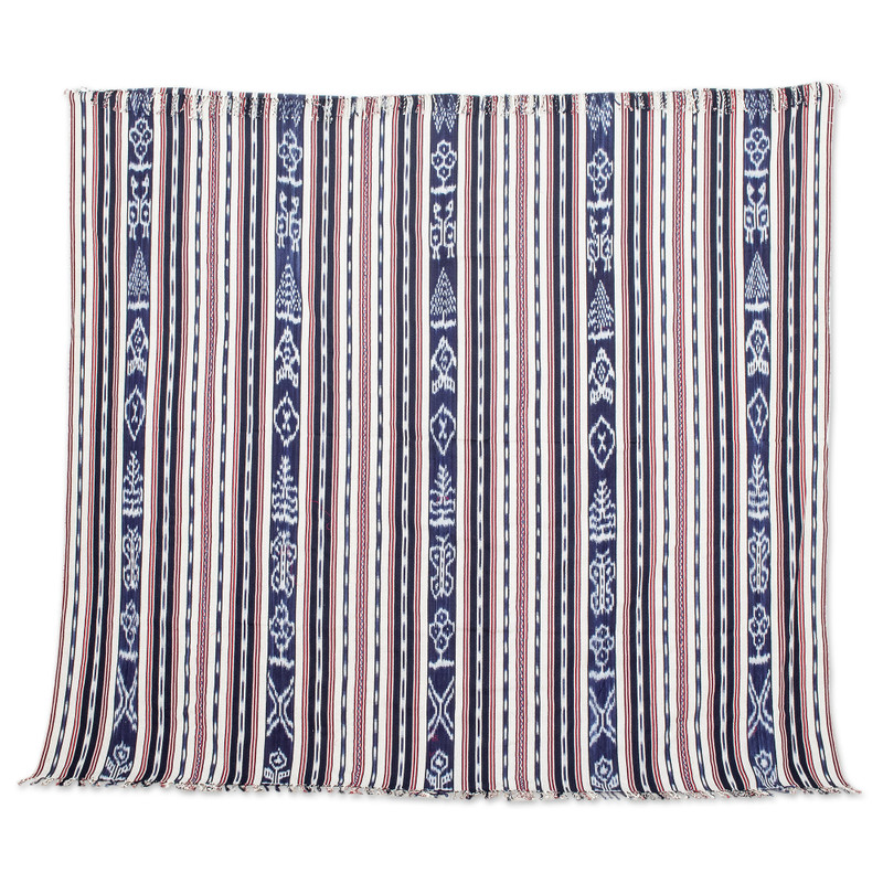 Members of the Women United for Artisan Development group in Guatemala hand-weave this striped throw blanket from 100% cotton in shades of ivory, red and blue. Interspersed with the stripes are geometric, animal, floral and leaf patterns reminiscent of traditional Mayan motifs that make up a unique decorative accent.