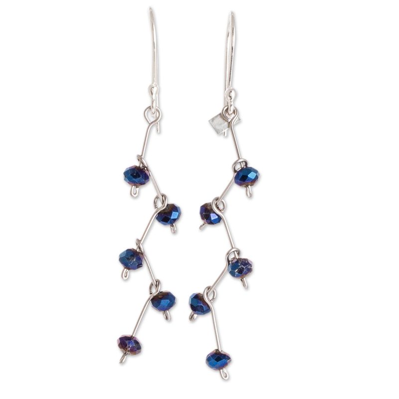 Backed by our 100% Happiness GuaranteeThese delicate dangle earrings feature blue crystals threaded with stainless steel wire on sterling silver hooks. They are crafted by artisan Domingo Reanda of Guatemala, who took his basic training in traditional weaving into new directions, including jewelry making.